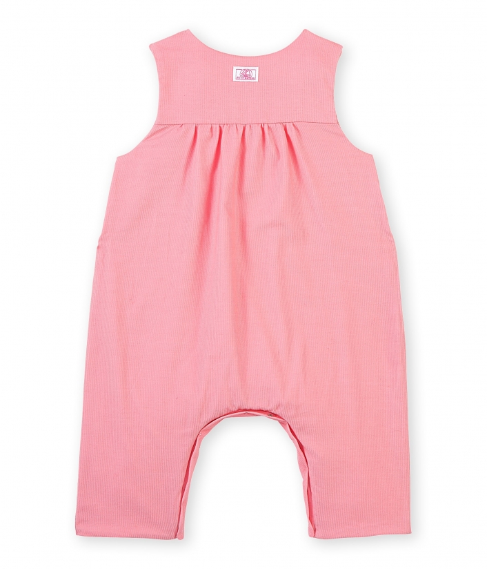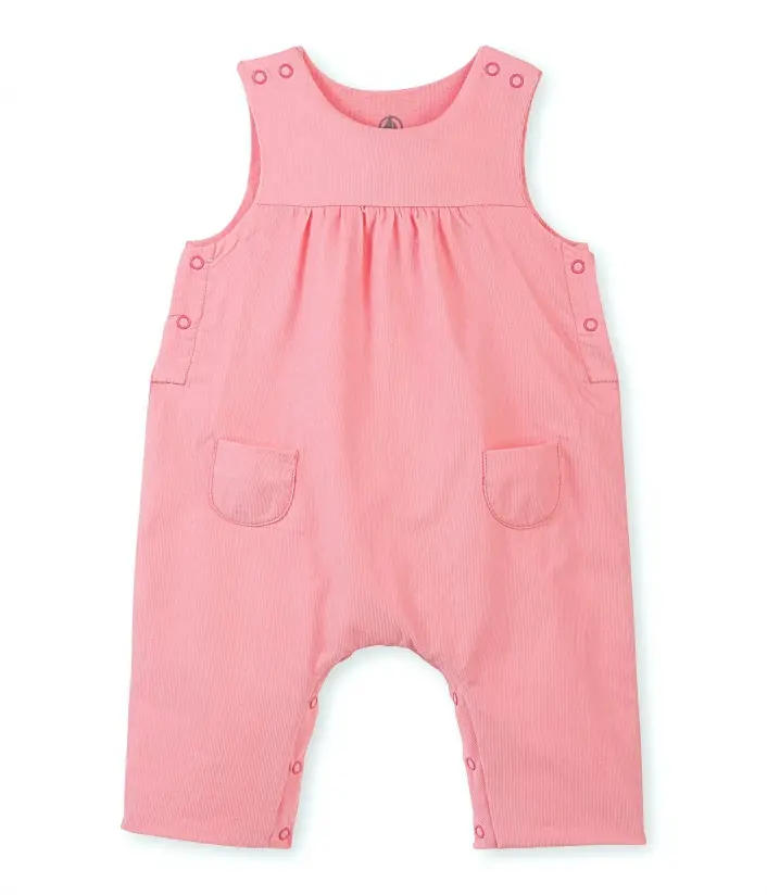 Свободный комбинезон для девочки, изготовленный из микровельвета. Для большего комфорта, подкладка комбинезона выполнена из трикотажа. Комбинезон декорирован маленькими карманами. Обратите внимание на удобные застежки на плечах, по бокам и между ножек. Сочетайте комбинезон с разнообразными футболками и блузами Petit Bateau для создания новых образов. Материал: 100% хлопок.