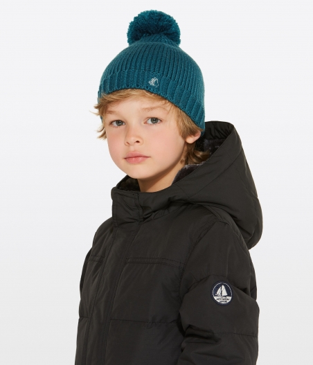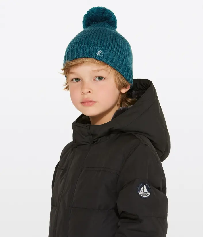 Шапка пошита из вязаной ткани с помпоном. Идеально подойдет для всей зимней одежды ребенка. Состав: 50% шерсть/ 50% акрил