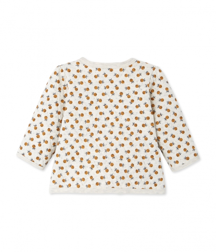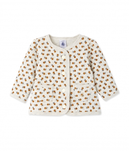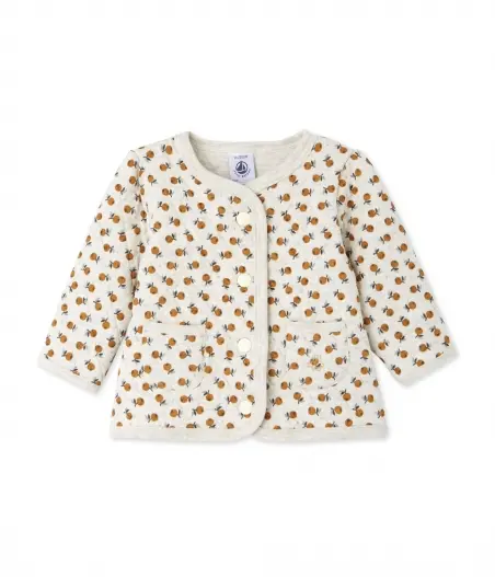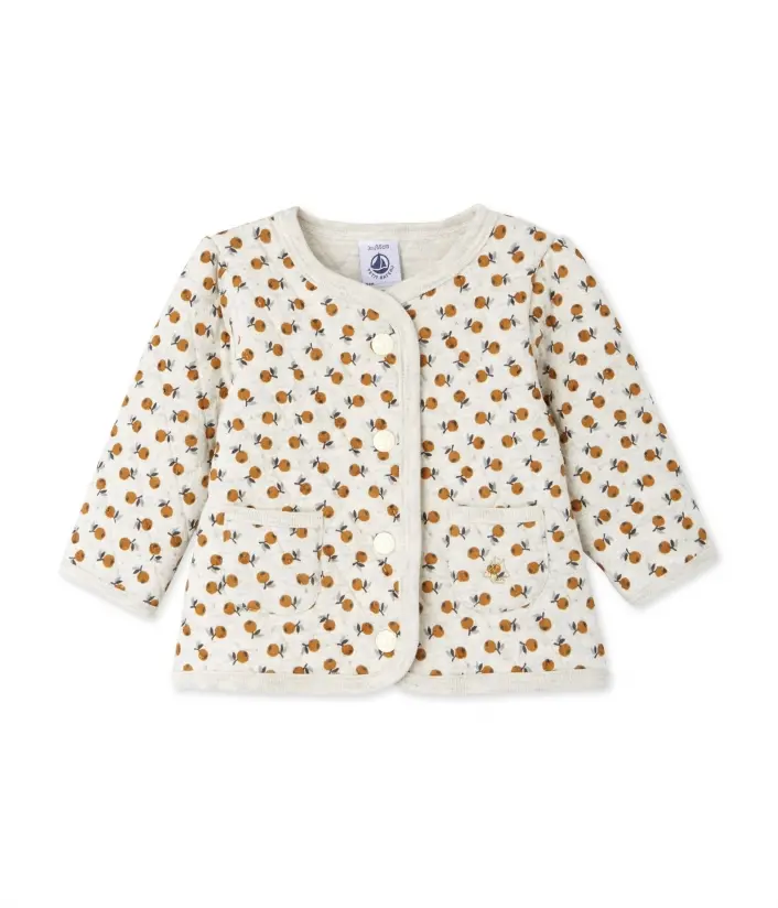 Кардиган для девочки изготовлен из хлопка с элегантным ягодным принтом. Украшенный двумя крошечными карманами спереди, одну из которых украшает вышитый логотип "Petit Bateau".