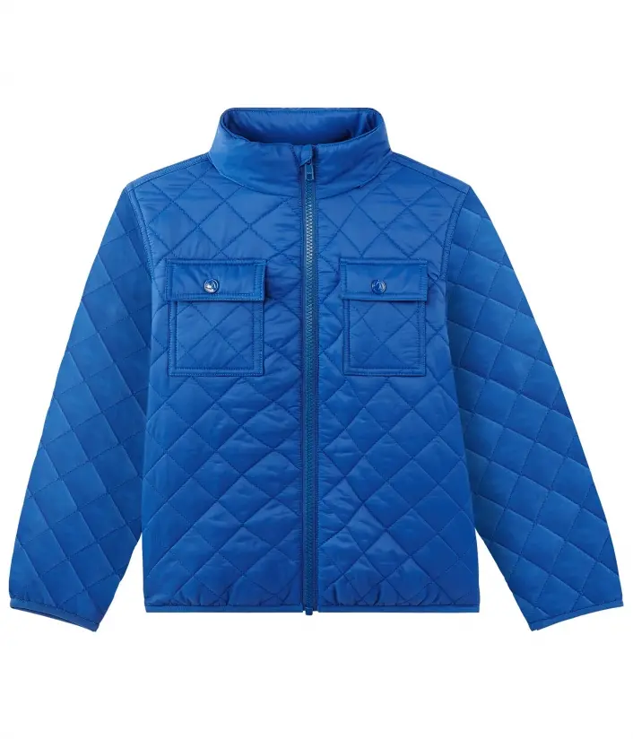 Куртка для мальчиков на молнии. Куртка изготовлена из нейлона. Куртка украшена стильными деталями: молнией, накладными карманами, капюшоном, кнопками с логотипом Petit Bateau. Куртка идеально подойдет на холодную погоду.