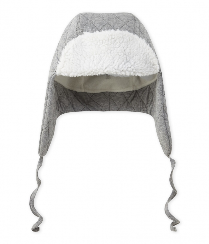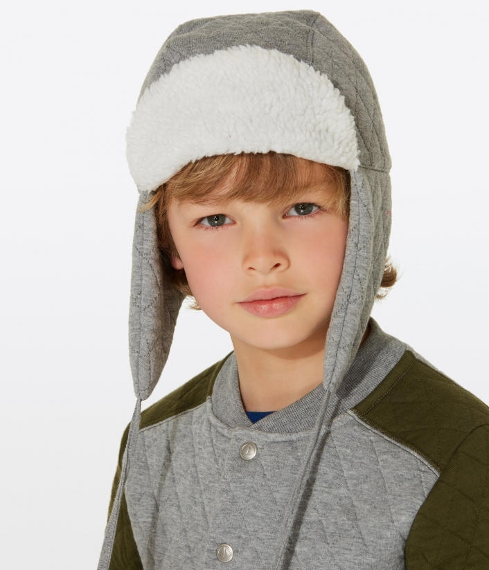 Шапка для мальчика. Тепла и мягкая, эта шапка надежно защитит ребенка от ветра и холода. Материал: 75% хлопок, 25% полиэстер.