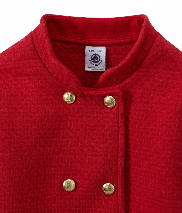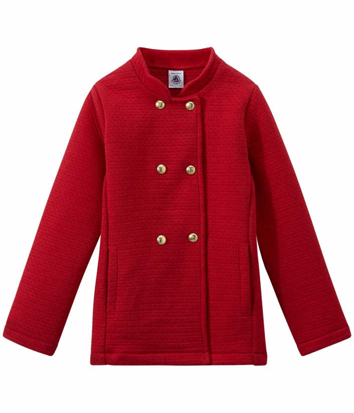 Пальто изготовлено из стеганого двойного трикотажа, декорировано красивыми золотыми пуговицами с логотипом Petit Bateau. Это пальто идеально подойдет для особых событий.