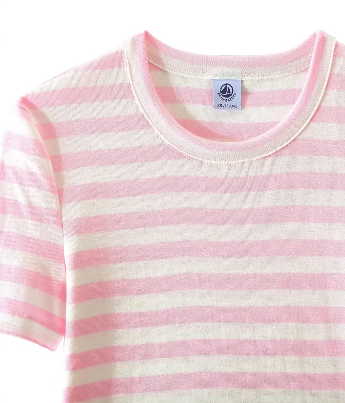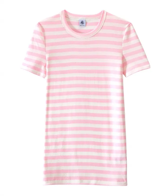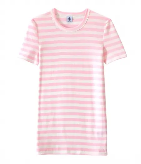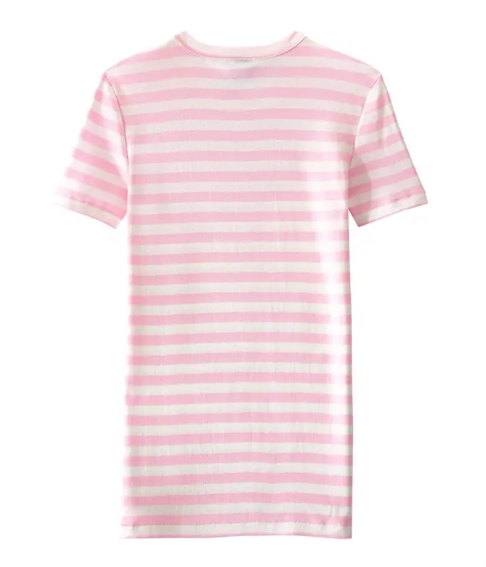 Ультрамодная женская футболка розово-молочного цвета в полоску. Незаменимая вещь для лета. Состав: 100% хлопок.