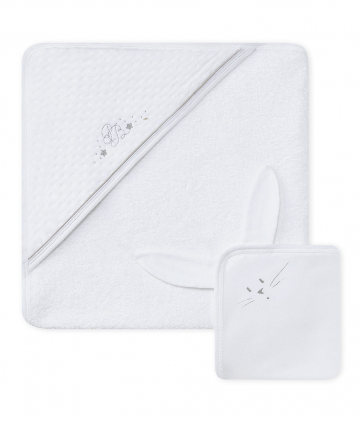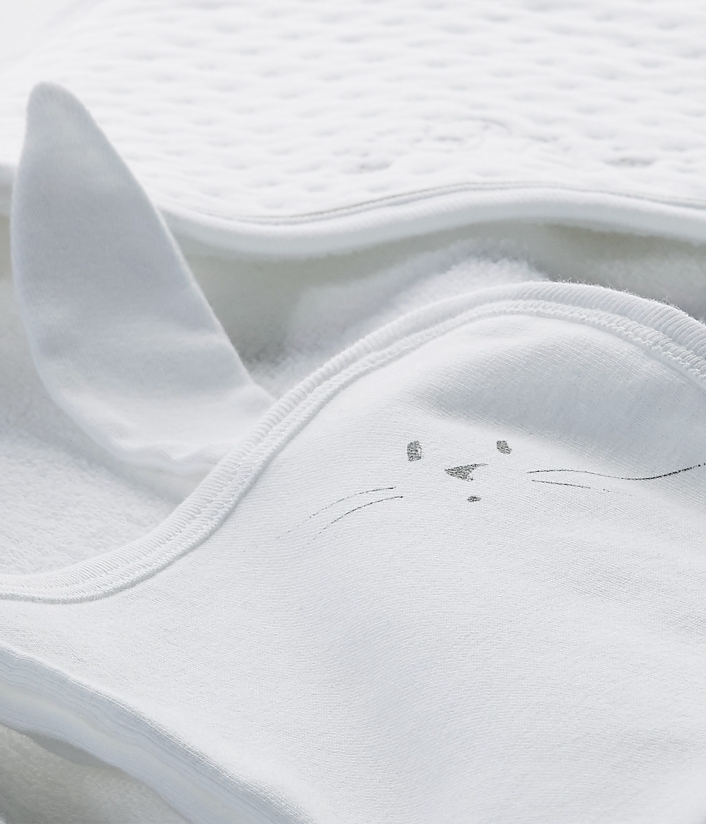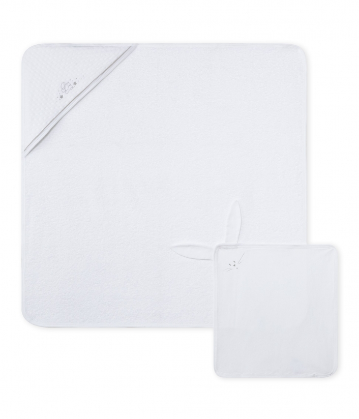 Идеальный подарок для новорожденного ребенка. Капюшон мягкий и удобный, изготовлен из высоко поглощающей махровой ткани. Имеет очаровательную вышивку инициалов «PB» и украшена звездочками. Малыш будет чувствовать себя уютно после купания.