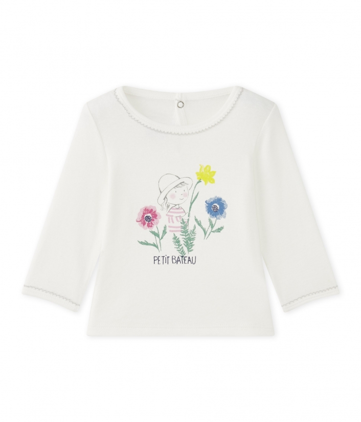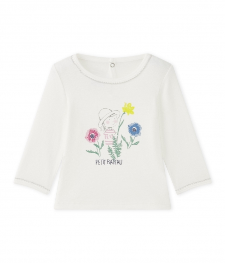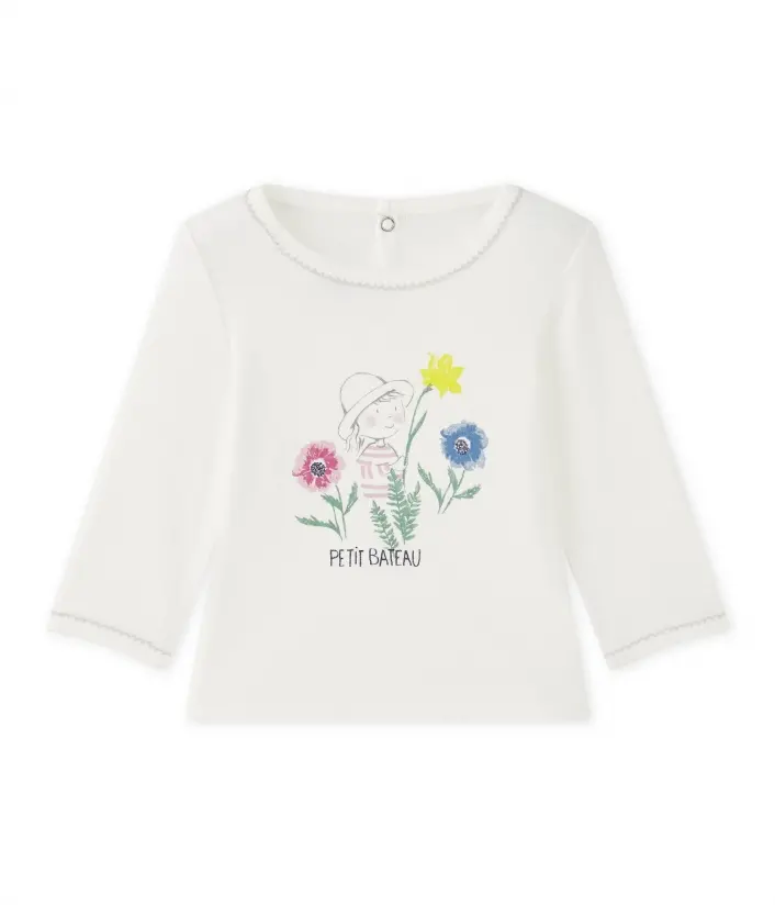 Футболка с длинными рукавами для девочки. На рисунке изображена маленькая девочка Маринетт с разноцветными цветами. Футболка имеет застежку на кнопку на спине. Прекрасно подходит для теплых погодных условий. Материал: 100% хлопок.