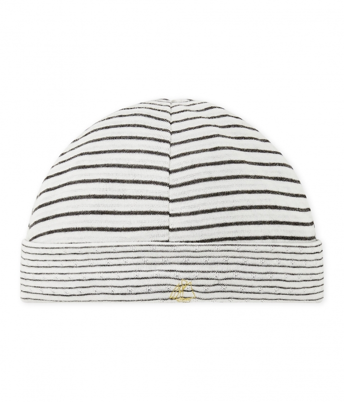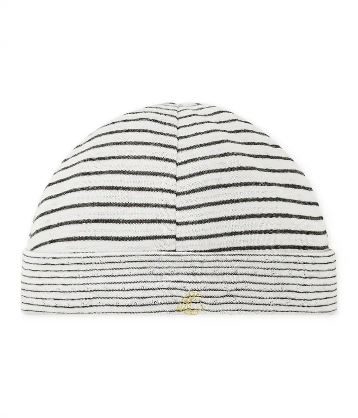 Шапочка для мальчика изготовлена ​​из двойного вязаного трикотажа. Состав: 100% хлопок.