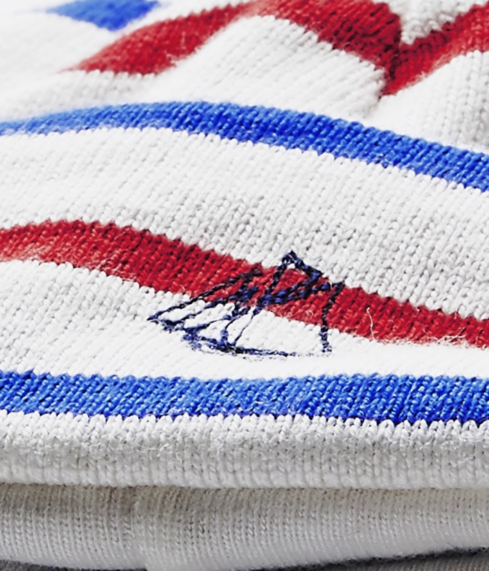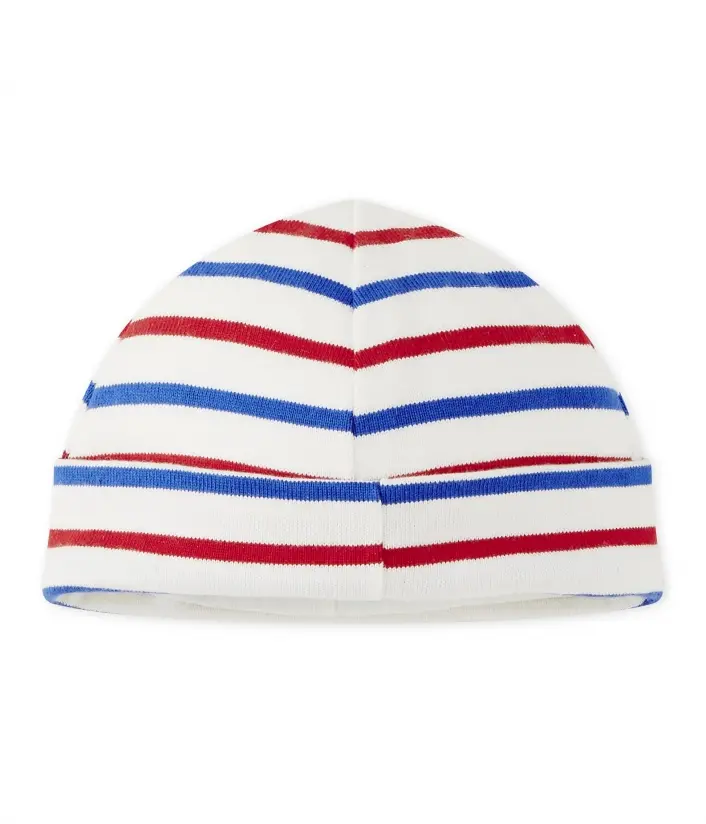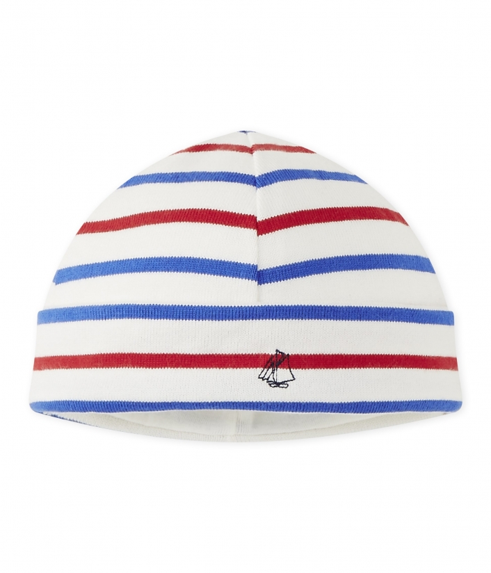 Шапочка для мальчика в традиционные разноцветные полоски от Petit Bateau.