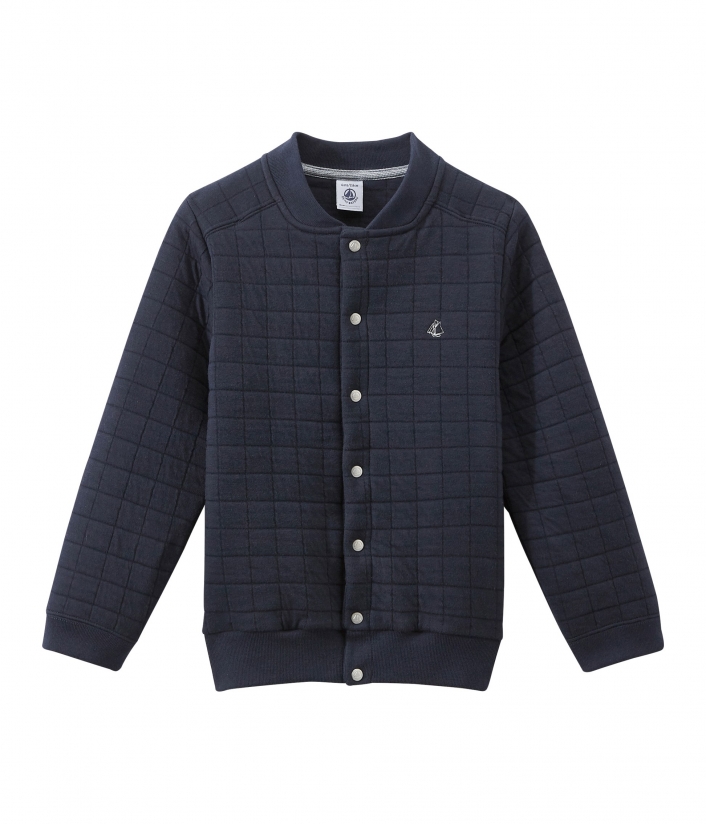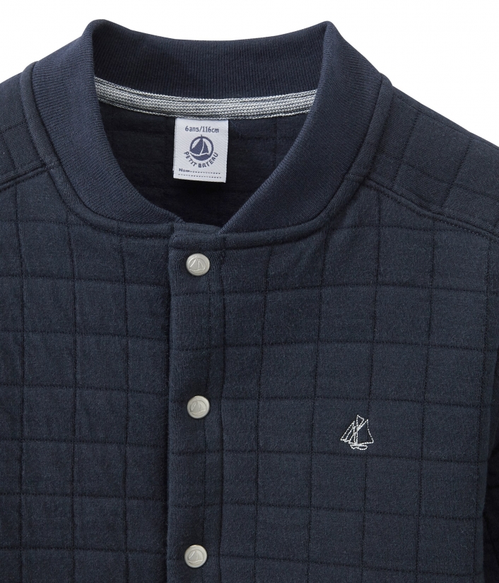 Кардиган изготовлен в стеганом двойном трикотаже и имеет форму пиджака. Кардиган выглядит стильно и модно.
