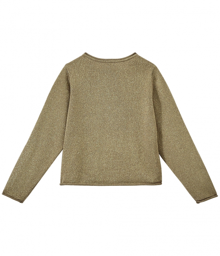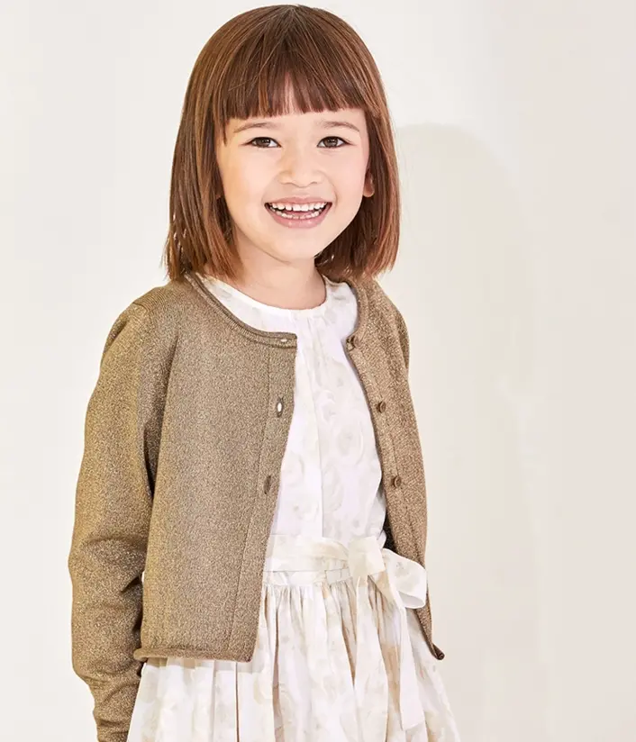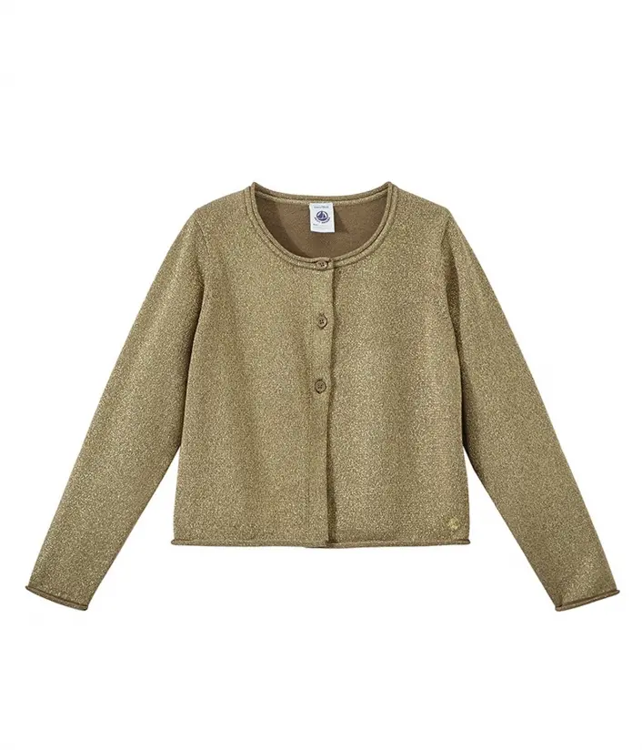 Кардиган с люрексом украсит торжественный наряд девочки. Состав: 88% хлопок, 7% полиамид, 5% металловолокно.