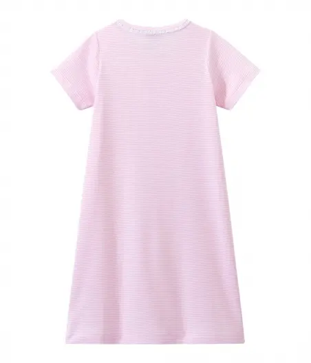 Ночная рубашка с короткими рукавами в розово-белую полоску. Состав: 100% хлопок.