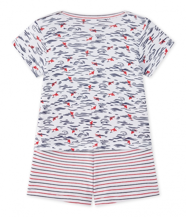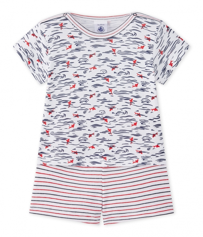 Футболка с рисунком рыбок, а шортики в полоску. Замечательная пижама для лета. Состав: 100% хлопок.