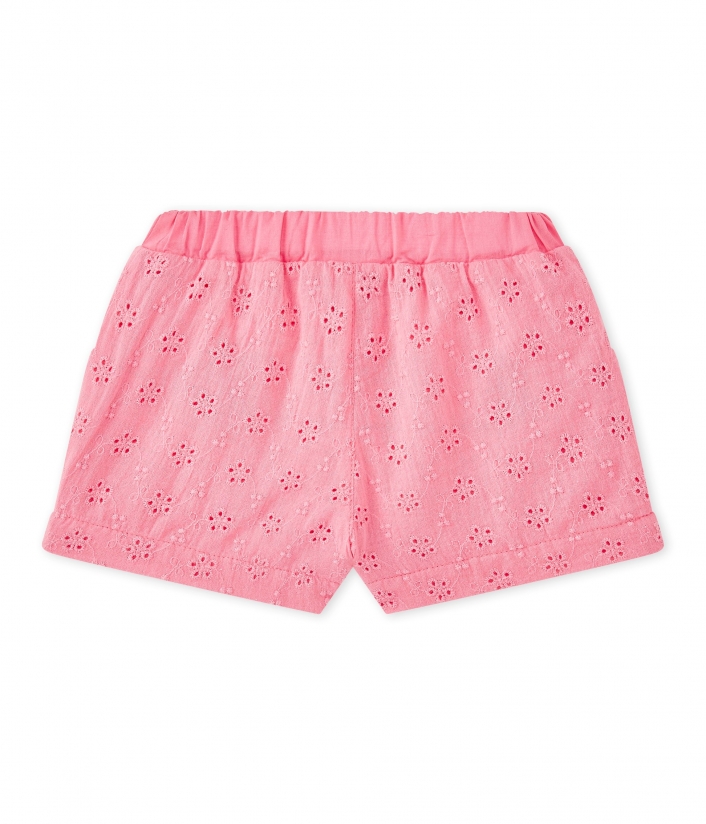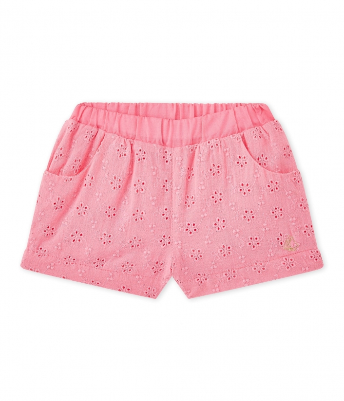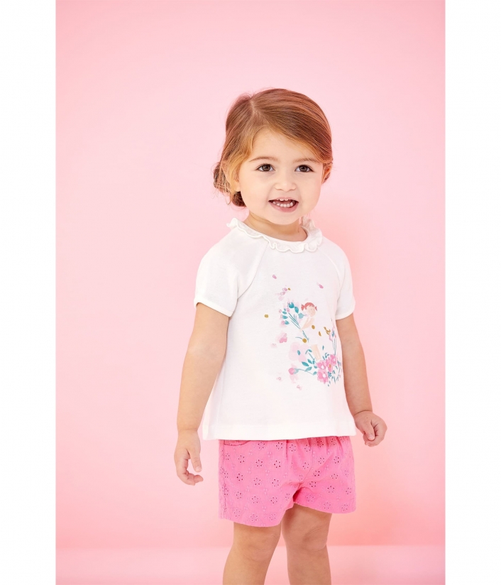 Удобные шорты для девочки с карманами. Эластичная вставка на талии позволяет легко переодеваться. Состав: 100% хлопок.