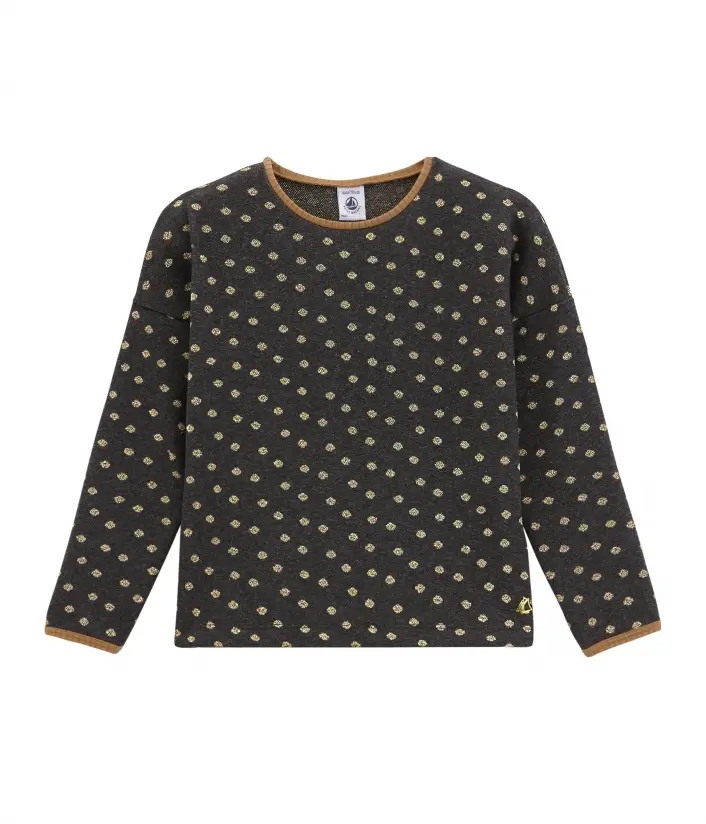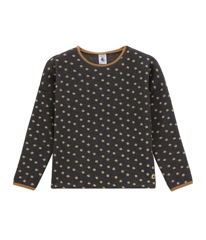 Элегантная блуза в золотистый горошек, несомненно, понравится девочке. Ведь она так мило выглядит. Пошита из интерлока (особый вид двойного трикотажа), который отличается мягкостью и гладкостью. Контрастная окантовка блузы выделяет все ее преимущества. Золотистый парусник Petit Bateau является знаковым. Девочка будет стильно выглядеть в этой очаровательной блузке. Состав: 86% хлопок, 7% полиамид, 7% полиэстер