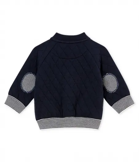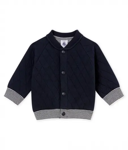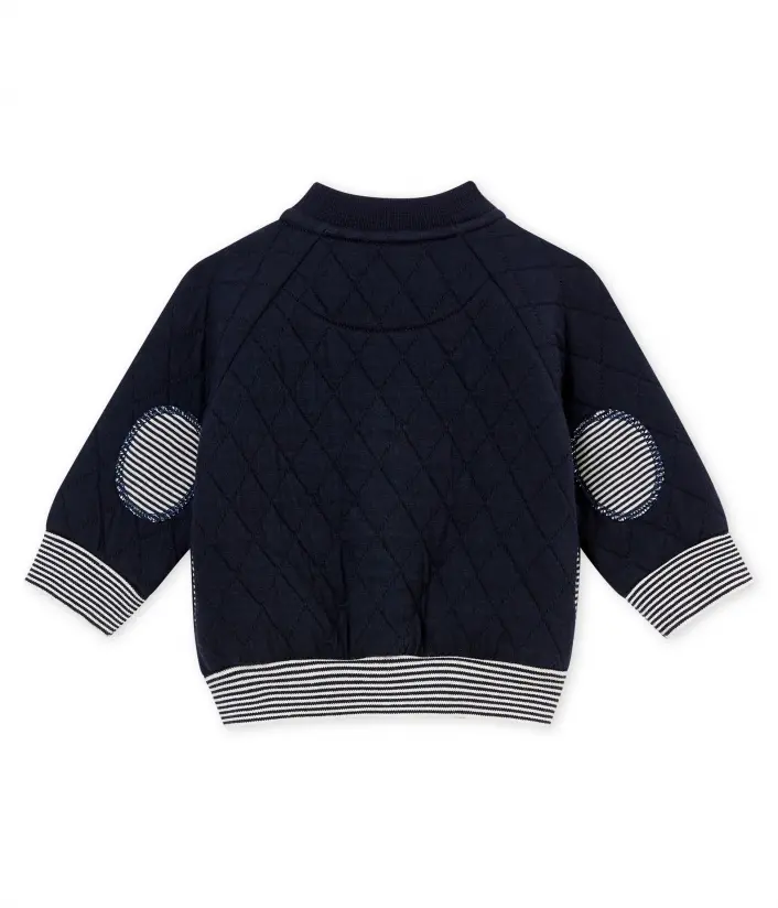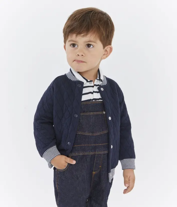 Стеганый детский кардиган - маст-хэв в гардеробе мальчика. Изготовлен из трикотажа цвета индиго. Традиционные полоски Petit Bateau украшают этот стильный кардиган. Застежки на кнопочки облегчат переодевания. Состав: 75% хлопок, 25% полиэтилен / 97% хлопок, 3% эластан