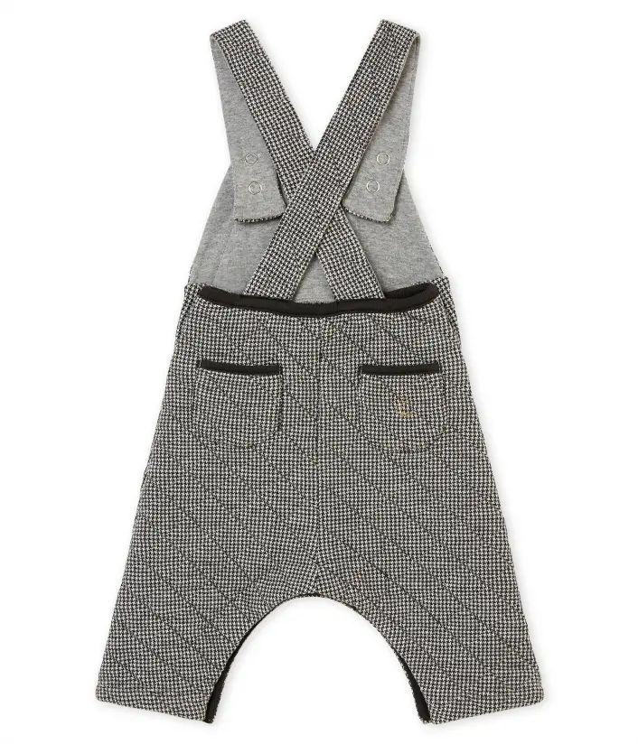 Трикотажный комбинезон украшен темно-серым бантиком спереди и оборками по швам карманов и пояса сзади изделия, что придает ему особый шарм. Регулируемые ремни с застежками на кнопочки. Закругленная карман спереди и сзади накладные с вышитым золотистым парусником Petit Bateau. Комбинезон для малышей предусматривает частую смену памперсов, поэтому он имеет удобные застежки на кнопки в шаговом шве. Практичная одежда на каждый день. Рекомендуем одевать с кофточкой и кардиганом. Состав: 88% хлопок, 12% полиэстер / 100% хлопок