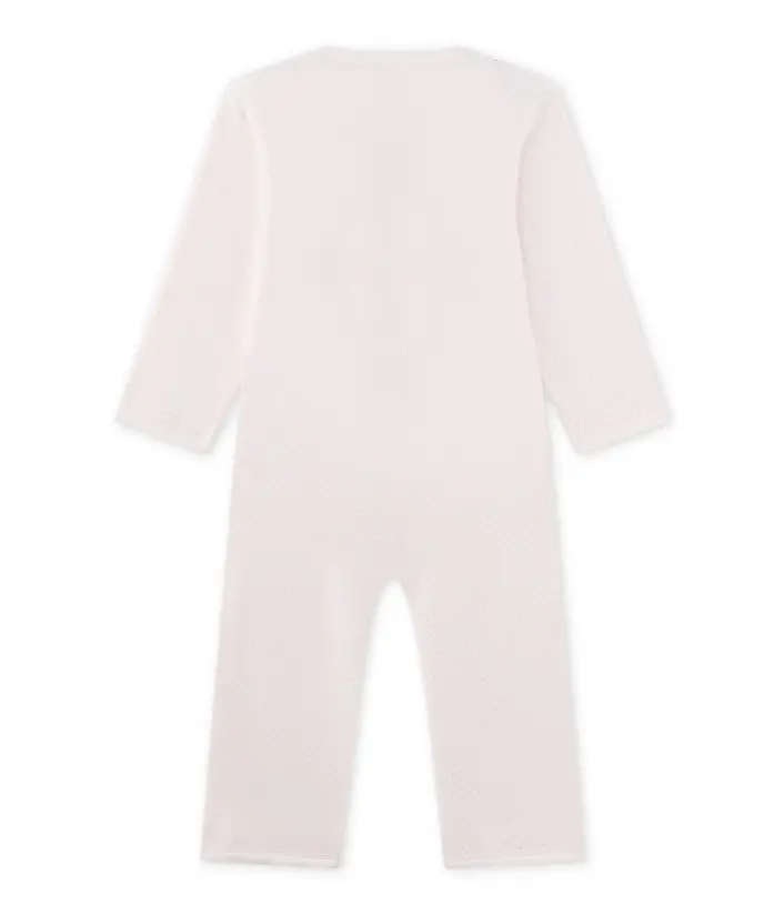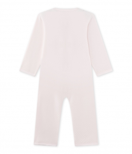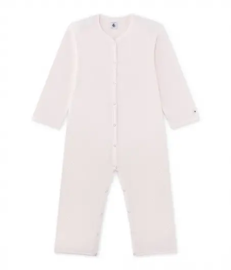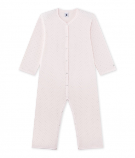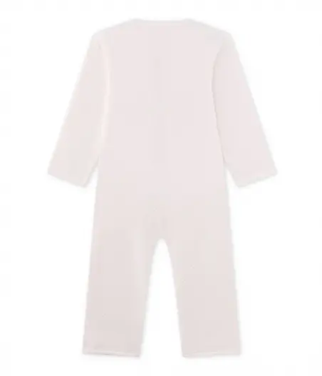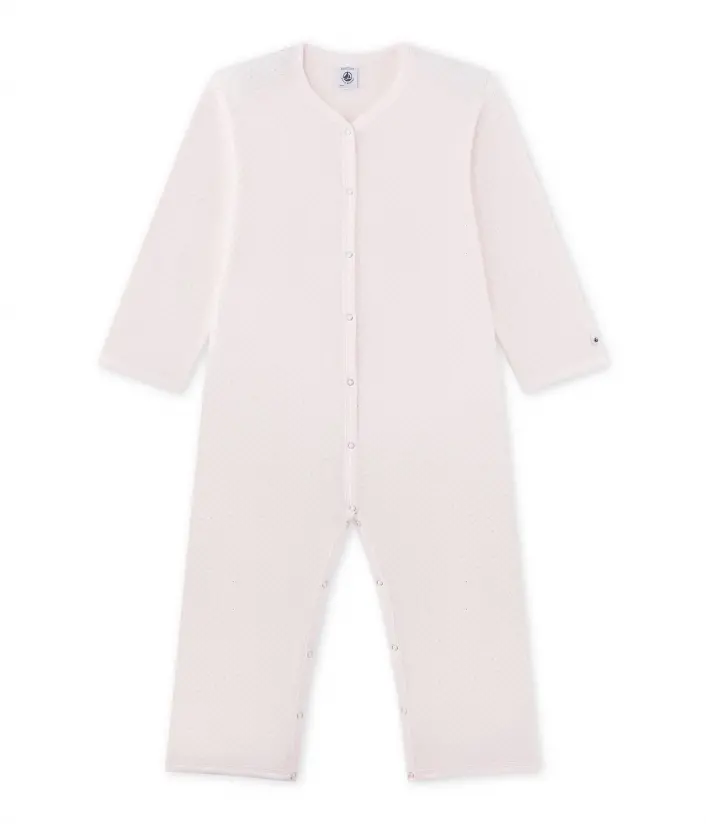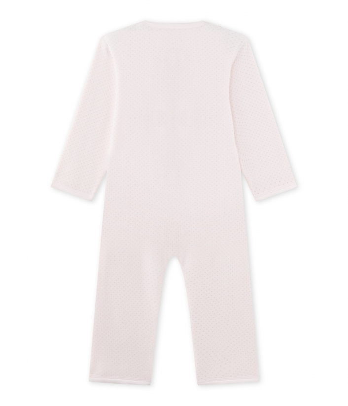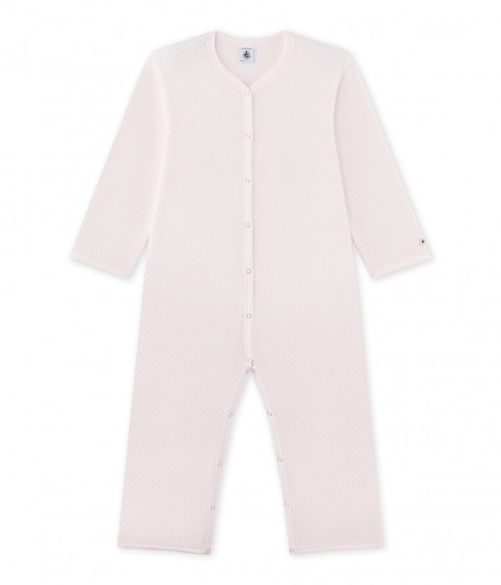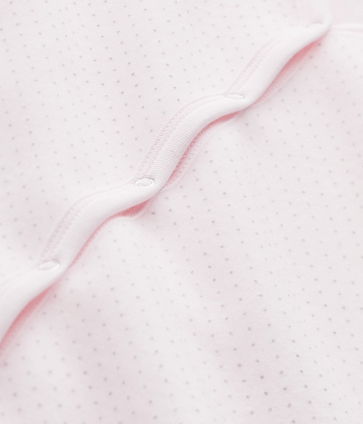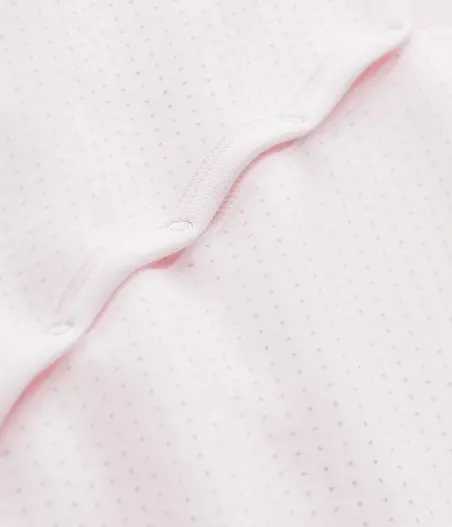 Розовый комбинезон в серебристый горошек. Удобные застежки между ножками сделают процесс переодевания быстрым и комфортным. Состав: 100% полиэстер