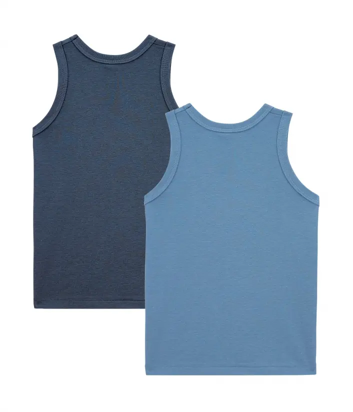 В наборе 2 майки разных оттенков голубого цвета. Рекомендуем одевать вместе с трусами или трусами-боксерами, схожей цветовой гаммы. OEKO-TEX® гарантирует безопасность материалов. Состав: 100% уникальный хлопок