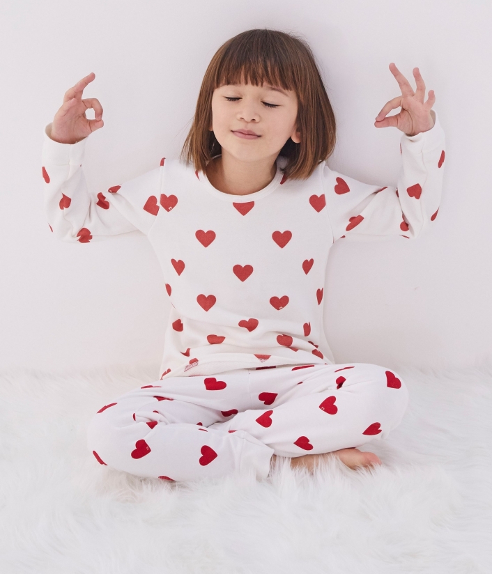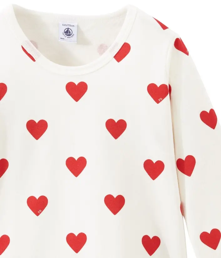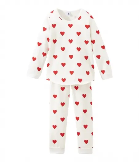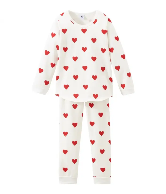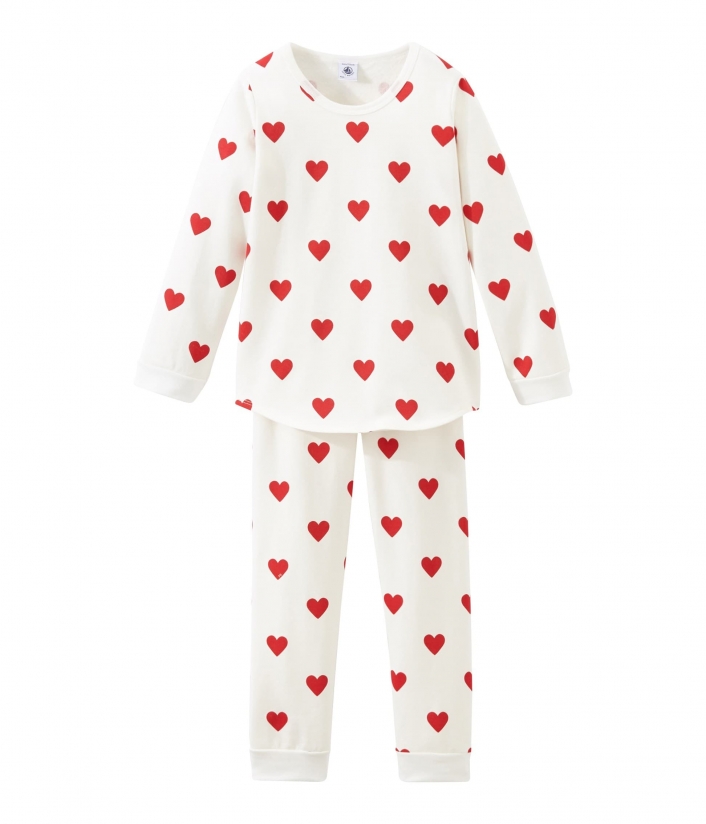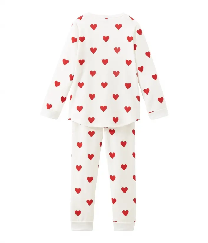 Пижама украшена сердечками. Рукава футболки и брюки с манжетами. OEKO-TEX® гарантирует безопасность для кожи. Состав: 100% уникальный хлопок