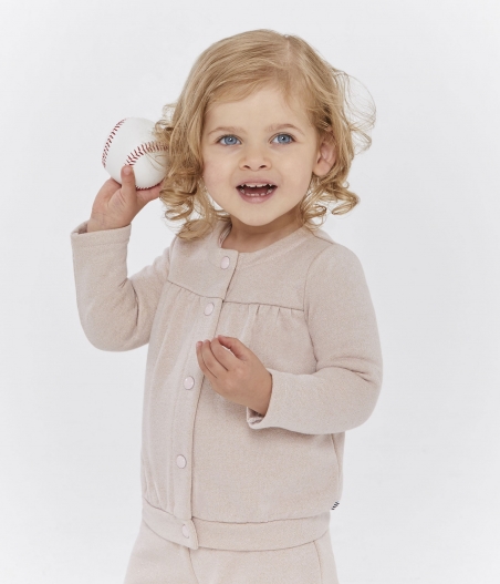 Модный кардиган для маленькой принцессы из блестящего трикотажного материала. Состав: 80% хлопок, 20% полиэстер / 100% хлопок