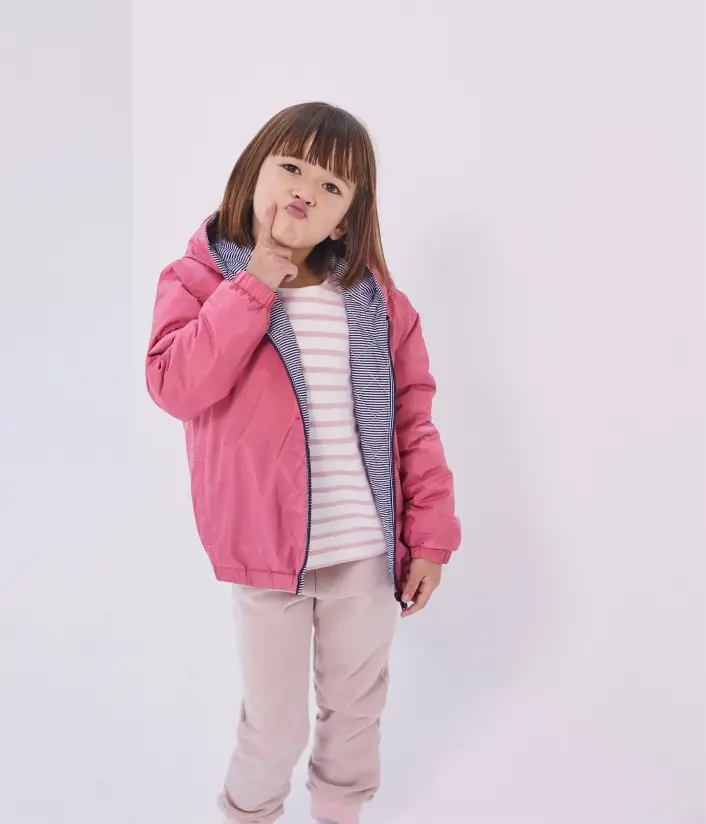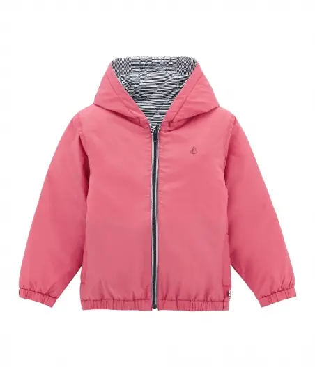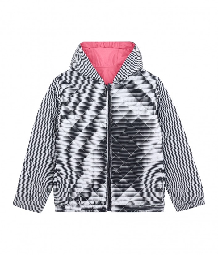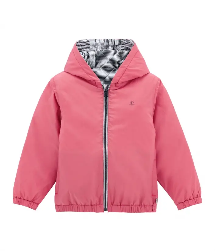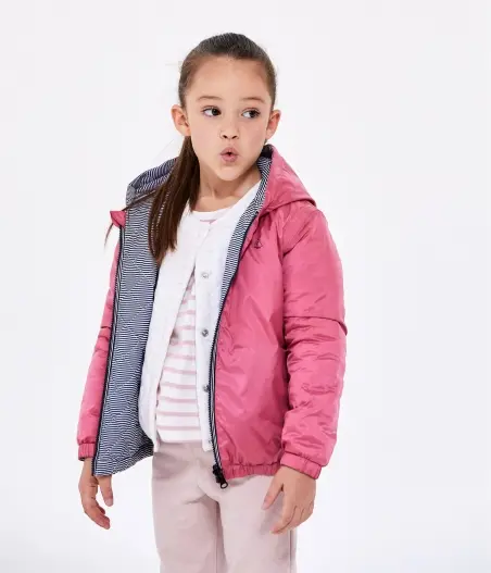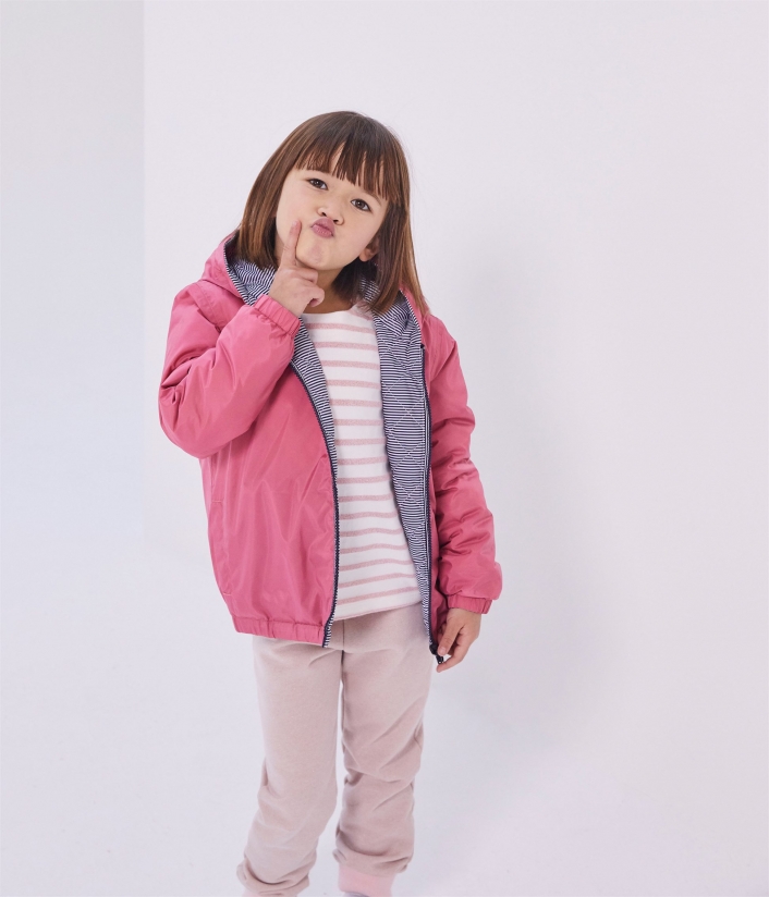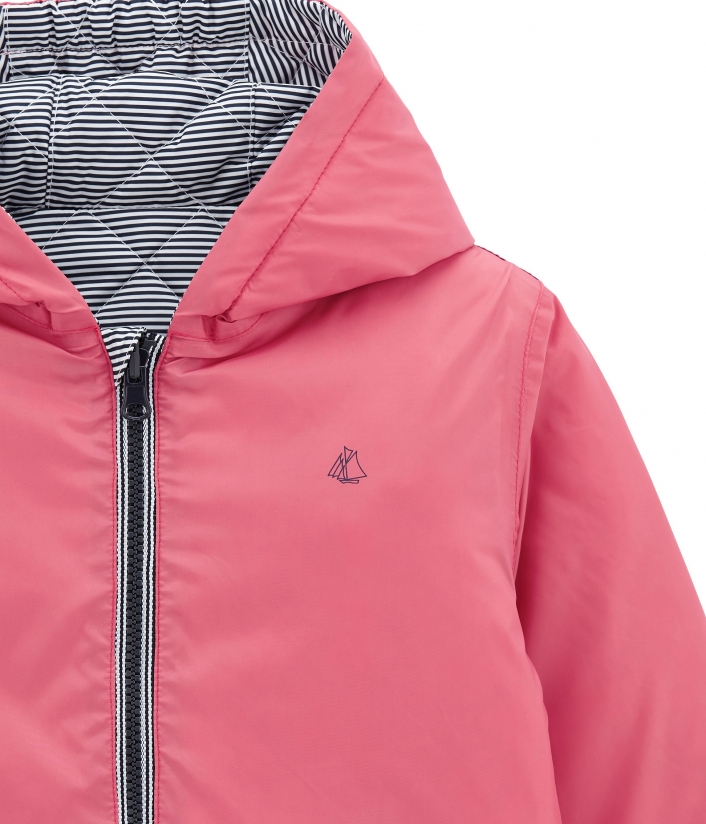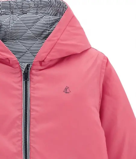 Petit Bateau разработал теплую ветронепроницаемую и водостойкую двустороннюю куртку. Одна сторона, сшитая из однотонного полиэстера, а другая - в традиционную полоску. Легко застегивается на молнию. Знаковым является принт парусника Petit Bateau впереди. Рекомендуем носить под плащ или пальто зимой, или отдельно. Состав: 100% полиэстер