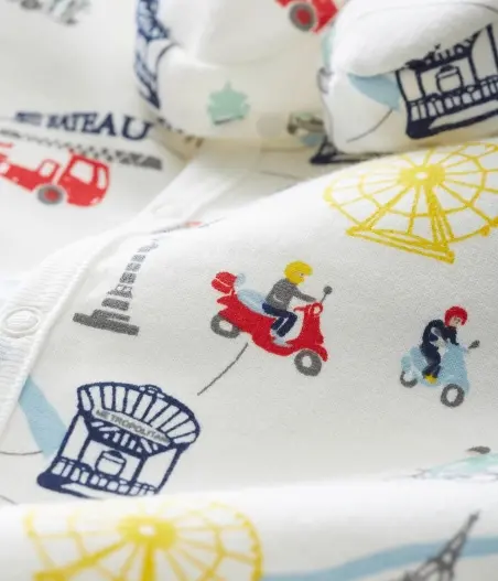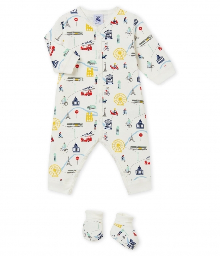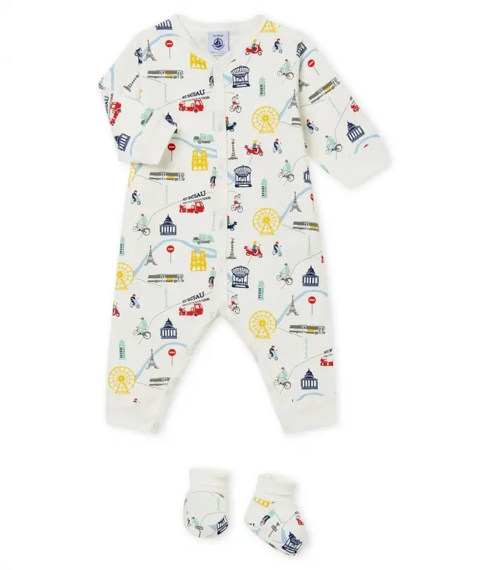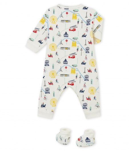 Комплект для младенца для комфортного сна: теплая пижама с застежками на кнопочки и пинетки с принтом парижского колорита. OEKO-TEX® гарантирует безопасность для кожи. Состав: 100% хлопок