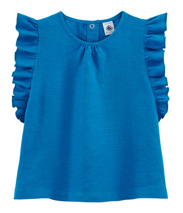 Блуза свободного кроя для девочки. Застежки на кнопочки сзади. Состав: 100% лен