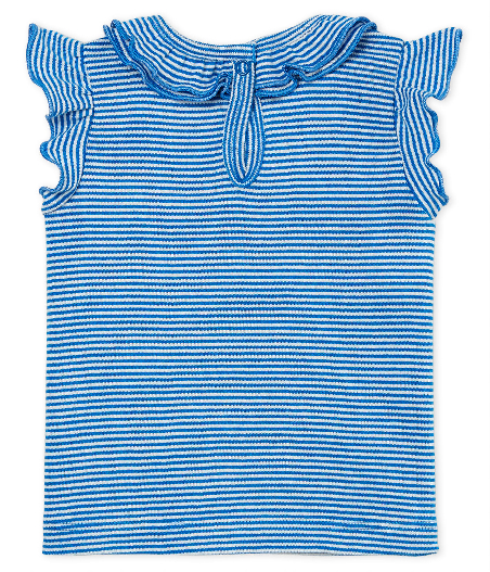 Замечательная летняя блуза для девочки. Изделию присущ морской стиль. Состав: 100% хлопок.