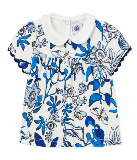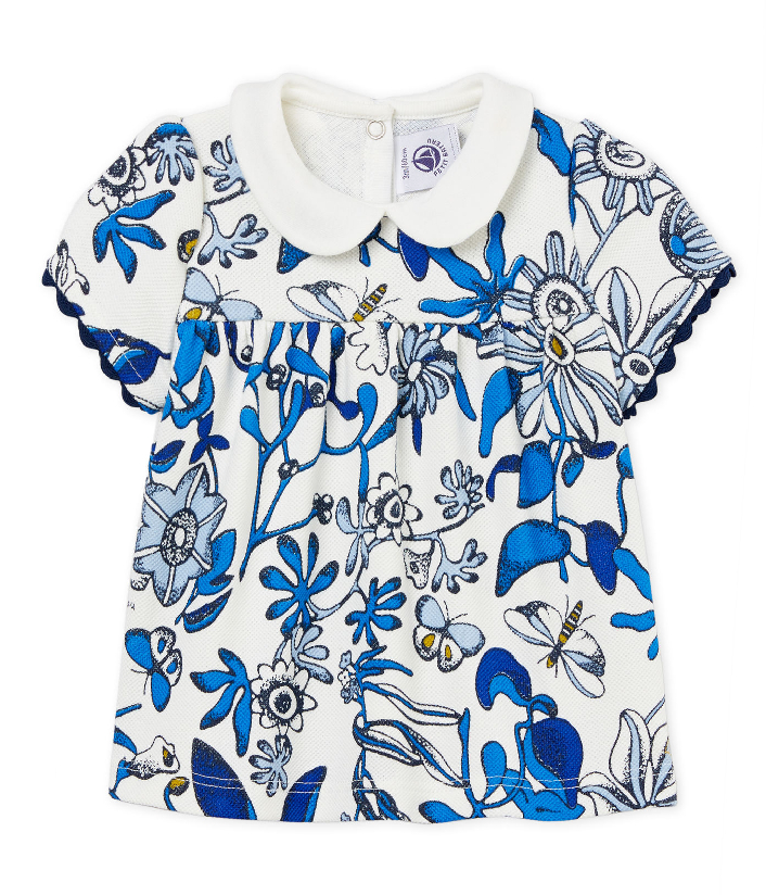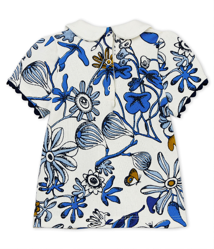 Милая блузка с воротничком для девочки. Замечательный цветочный принт придает этому изделию особый шарм. Застежки на кнопочки сзади. Товар сертифицирован OEKO-TEX® Standart 100, что дает уверенность в безопасности и качестве одежды. Состав: 100% хлопок