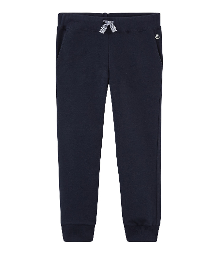 Спортивные брюки на каждый день. Эти штанишки для мальчика сшиты из хлопчатобумажного трикотажа - легкого и эластичного материала для комфортного ношения. Пояс на завязке, карманы по бокам и одна сзади, манжеты на брюках. Знаковым является вышивка парусника и полосатый принт кармана Petit Bateau. Состав 97% хлопок, 3% эластан / 100% хлопок