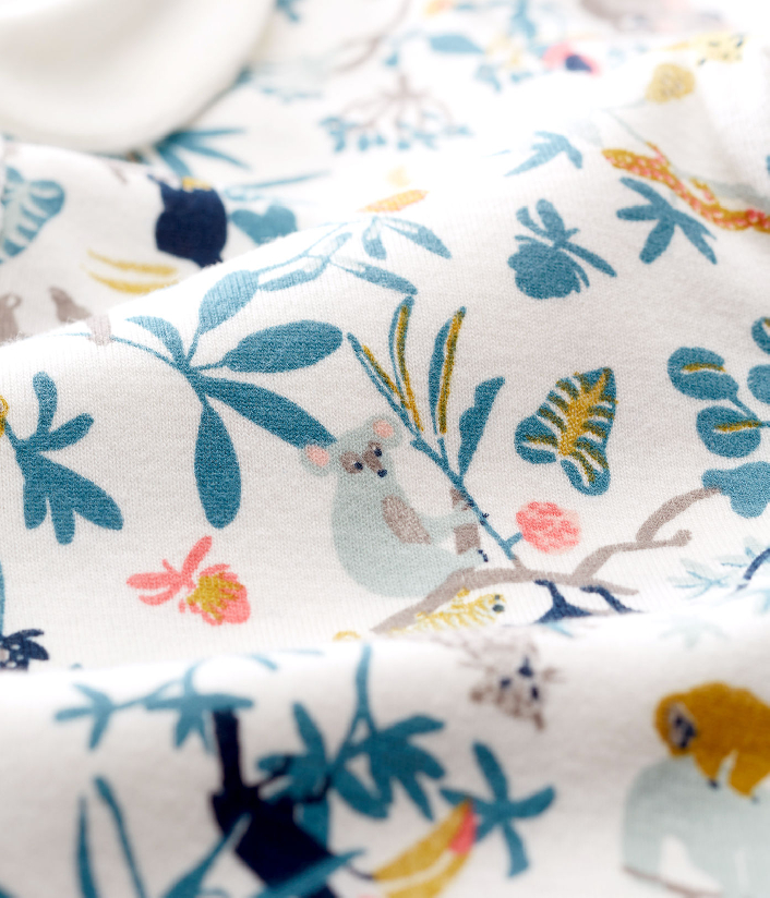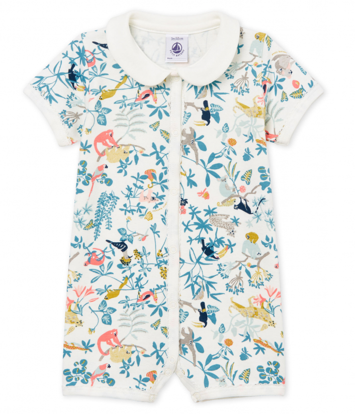 Сафари принт. Застежки спереди и между ножек на кнопочки. Воротник в стиле "Питер Пэн". Товар сертифицирован OEKO-TEX® Standart 100, что дает уверенность в безопасности и качестве одежды. Состав: 100% хлопок