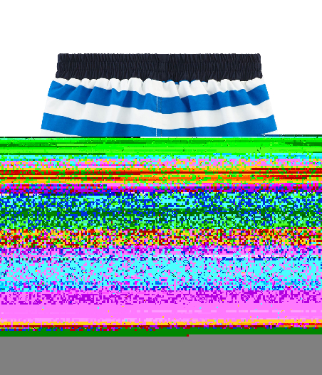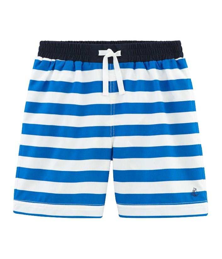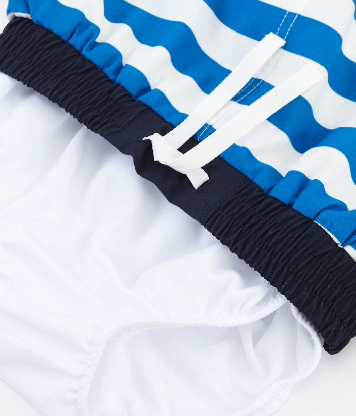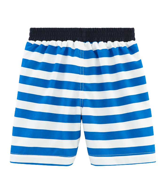 Летние шортики для мальчика. Они украшены полоской и имеют эластичный пояс на завязке. Состав: 100% полиэстер
