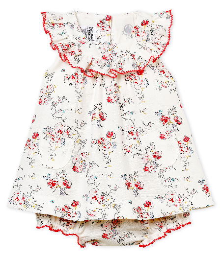 Милое платье и трусики-панталоны с цветочным принтом для девочки. Платье имеет накладные карманы спереди, а сзади застегивается на кнопочки для удобного переодевания. Товар сертифицирован OEKO-TEX® Standart 100, что дает уверенность в безопасности и качестве одежды. Состав: 100% хлопок