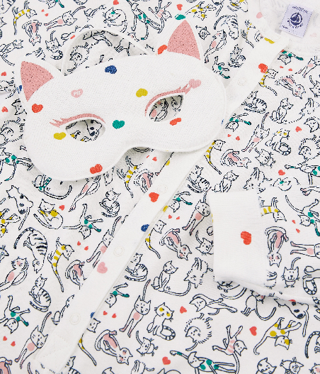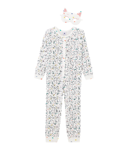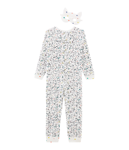 Пижама-комбинезон для девочки с маской для сна. Она украшена принтом котиков. Комфортная, стильная и невероятно мягкая пижама. Товар сертифицирован OEKO-TEX® Standart 100, что дает уверенность в безопасности и качестве одежды. Состав: 100% хлопок / 100% полиамид