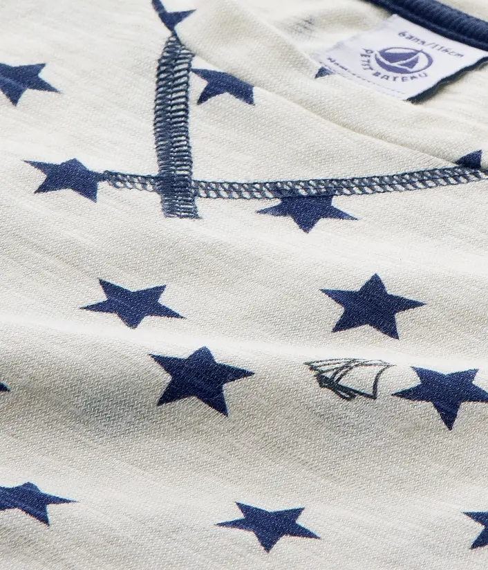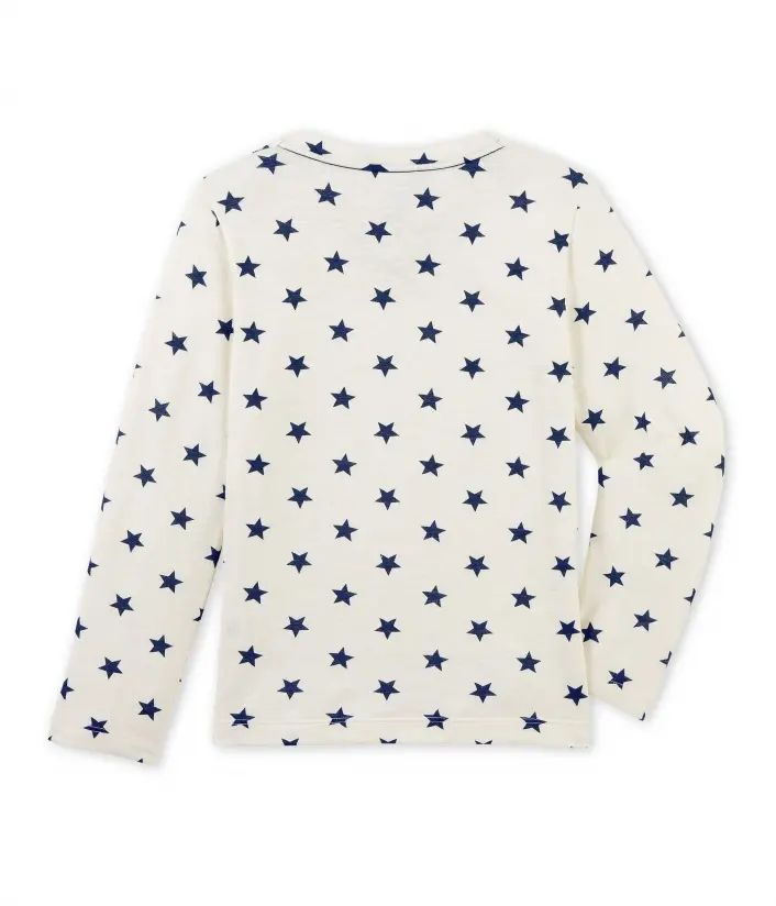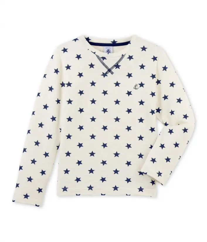 Футболка с длинными рукавами для мальчика, изготовлена из трикотажа с принтом в виде звезд. Материал: 100% хлопок.