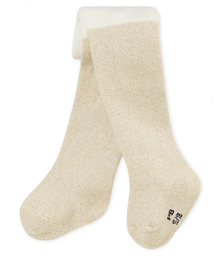Колготки для девочки украшены блестящей золотистой нитью. Состав: 65% хлопок, 22% полиэстер, 8% фибра, 3% эластан, 2% полиэстер