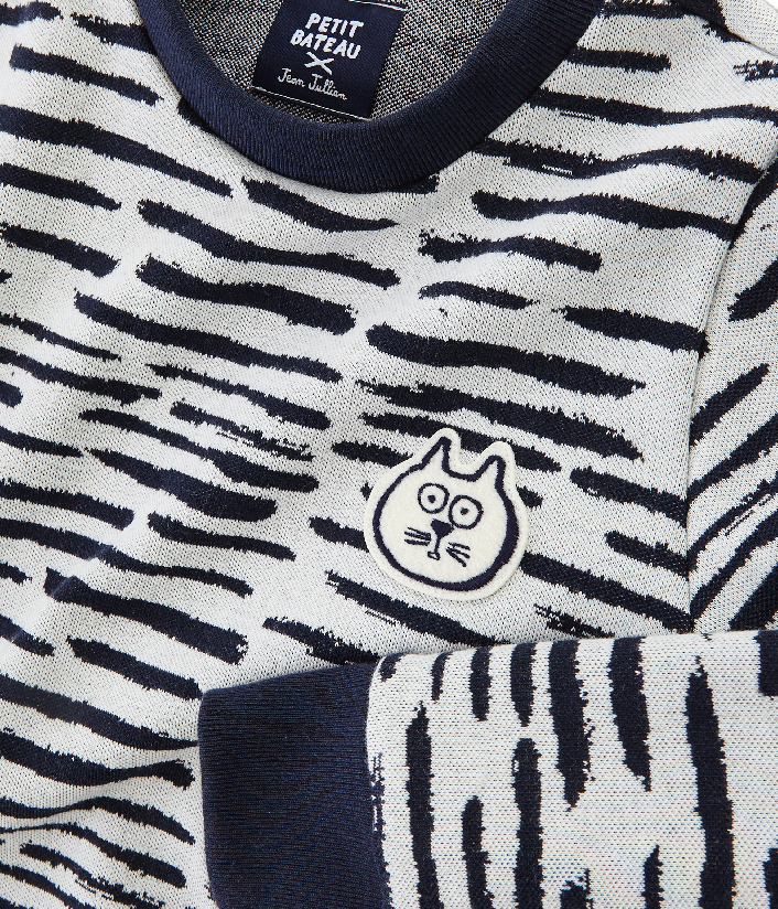 Графический дизайнер Жан Жюльен (Jean Jullien) — талантливый французский иллюстратор, объединился с экспертами Petit Bateau. Он придумал несколько анимационных персонажей, а дизайнеры Petit Beteau сделали из них нашивки. Безусловно, стильный свитшот привлечет внимание окружающих. Состав: 100% хлопок