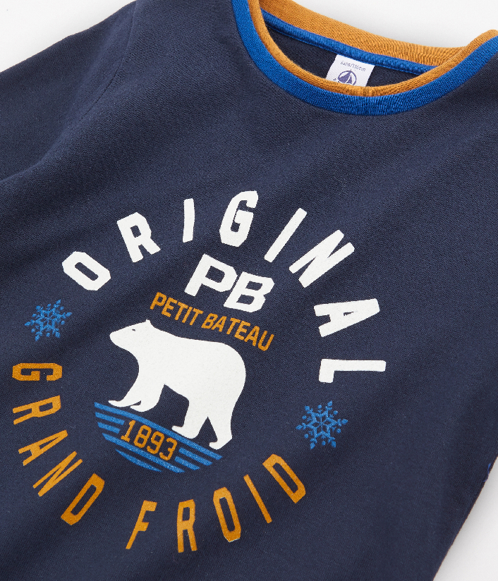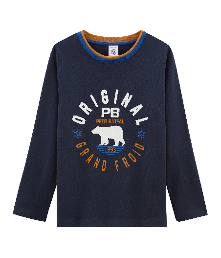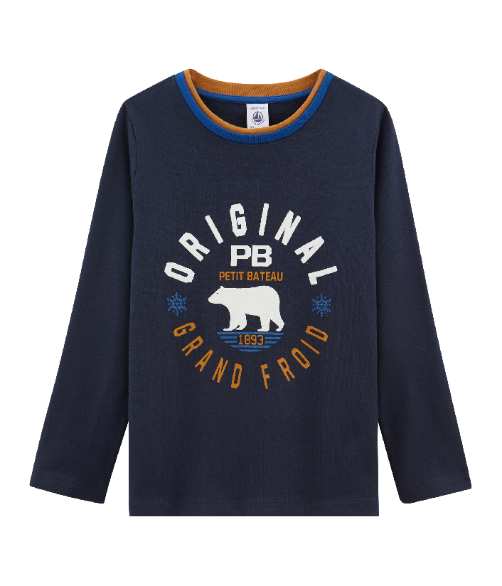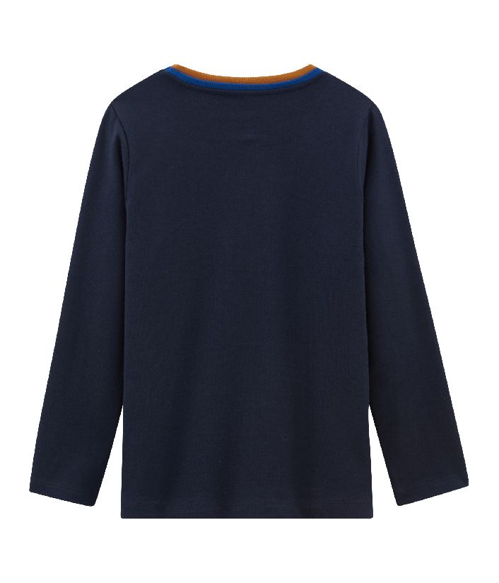 Футболка с длинными рукавами, интересный принт, контрастная горловина. Состав: 100% хлопок