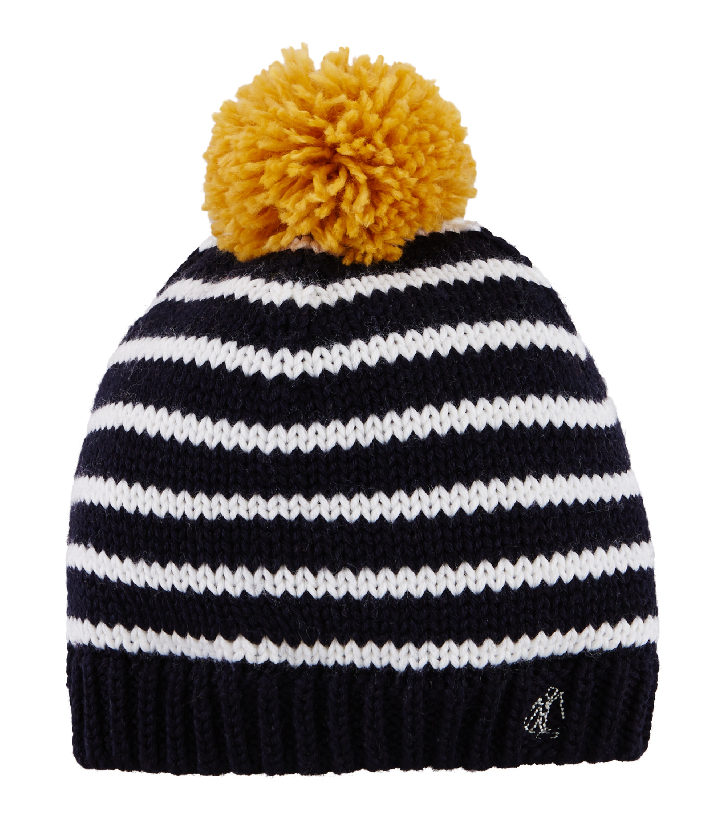 Теплая шапочка с помпоном и вышевкой парусника Petit Bateau. Состав: 50% шерсть, 50% акрил / 100% полиэтилен