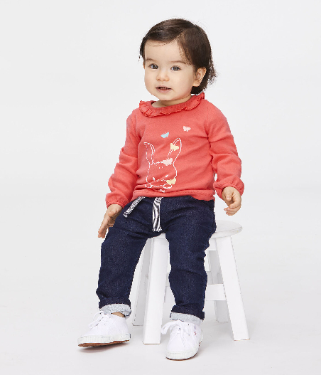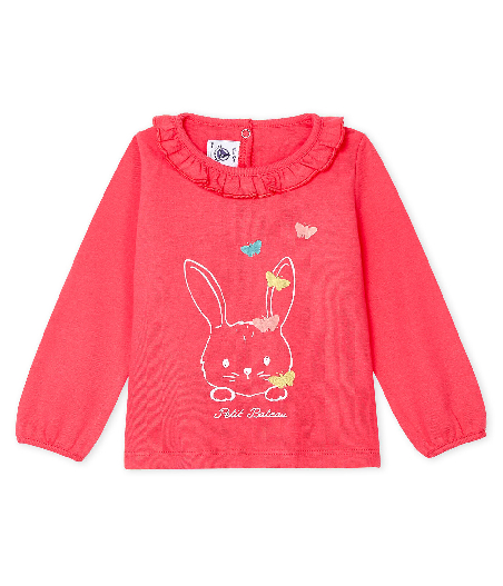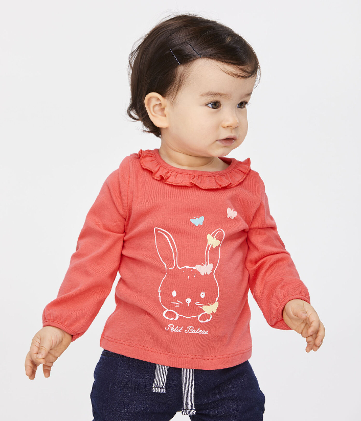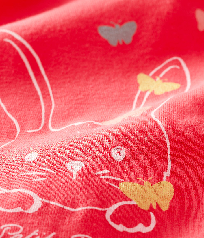 Трикотажная блуза с принтом зайчика с бабочками. Застежка на кнопочки сзади. Одежда изготавливается из органического хлопка. Состав: 100% хлопок