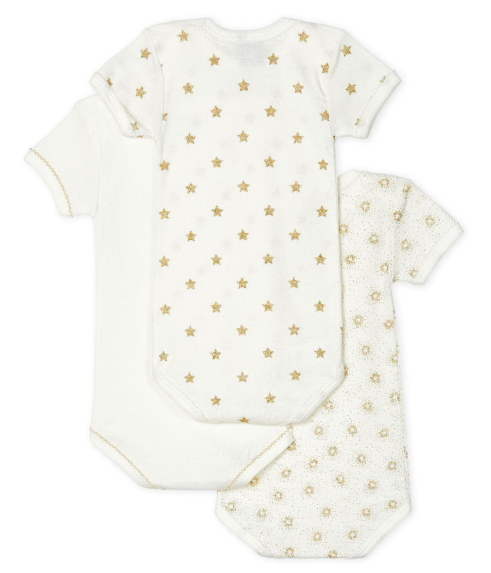 Набор с тремя боди с короткими рукавами. Они украшены различными принтами. Застежка на кнопочки для удобного переодевания. Идеальный выбор. Состав: 100% хлопок