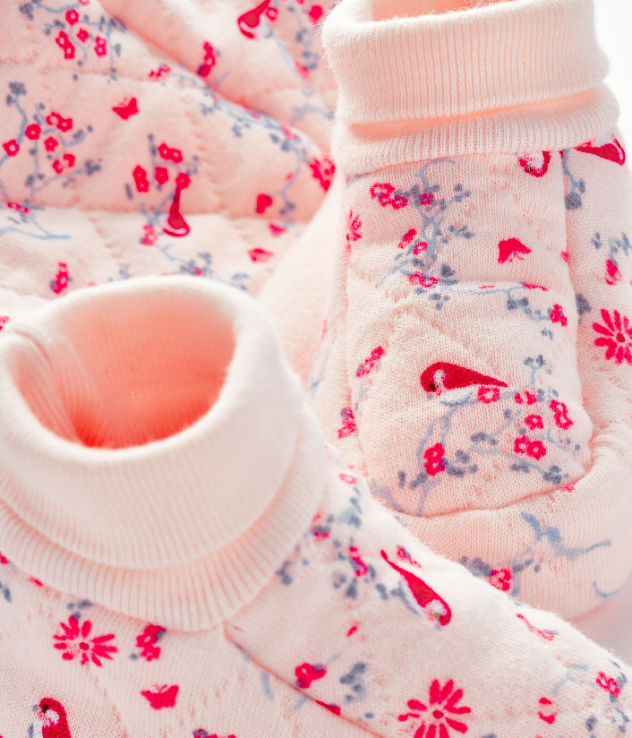 Шапочка декорирована милыми ушками. Пинетки легко одеваются и удерживаются на ножке. Состав: 92% хлопок, 8% полиэстер / 100% хлопок