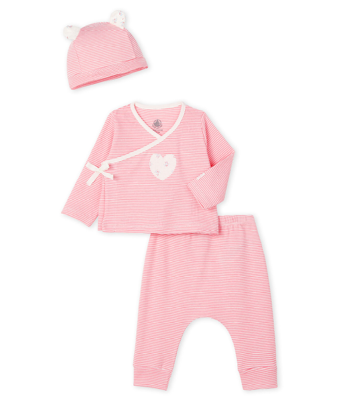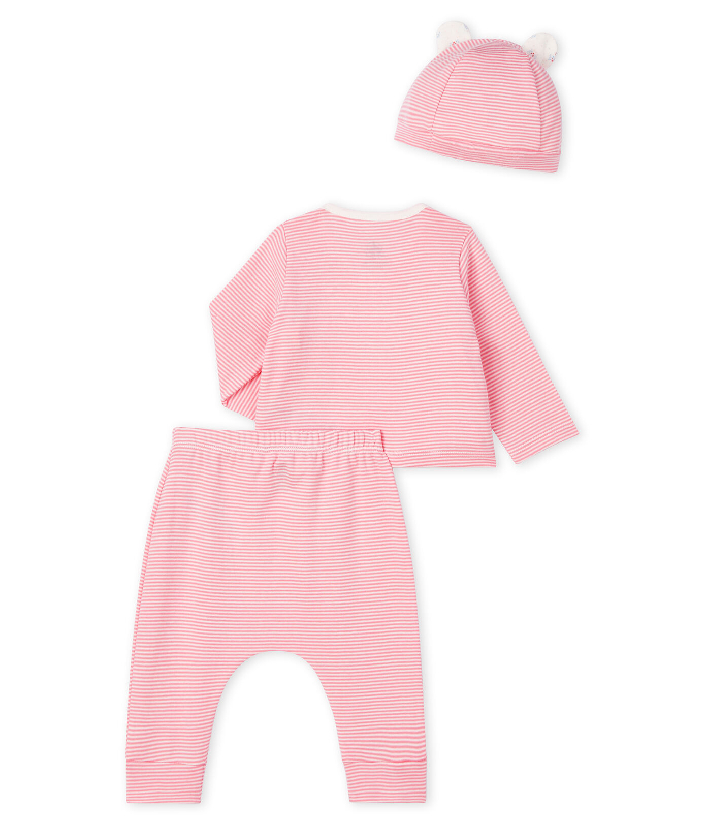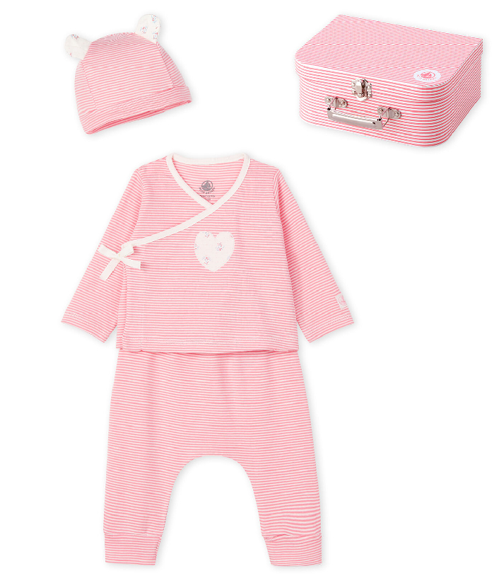 Набор 3 в 1 от Petit Bateau - кардиган, шапочка и штанишки. Платье на запах. Шапочка украшена милыми ушками. Брюки с эластичным поясом для малышей. Детская одежда изготавливается из органического хлопка. Набор продается в волшебном чемоданчике. Идеальный выбор для подарка. Состав: 100% хлопок