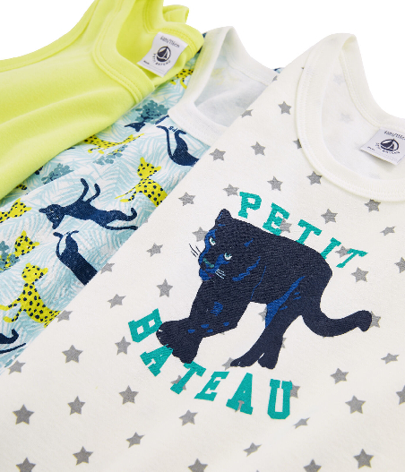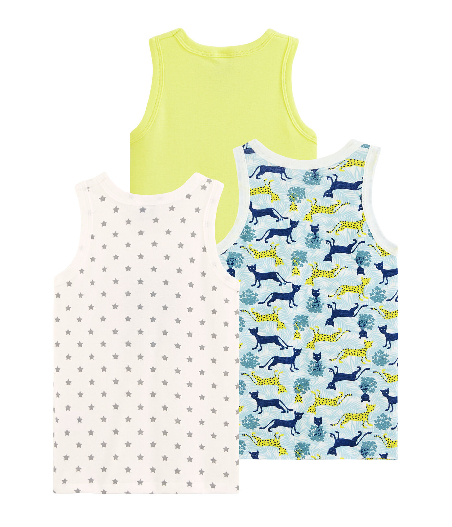 В комплекте три майки с различными принтами. Нижнее белье изготавливается из органического хлопка. Состав: 100% хлопок