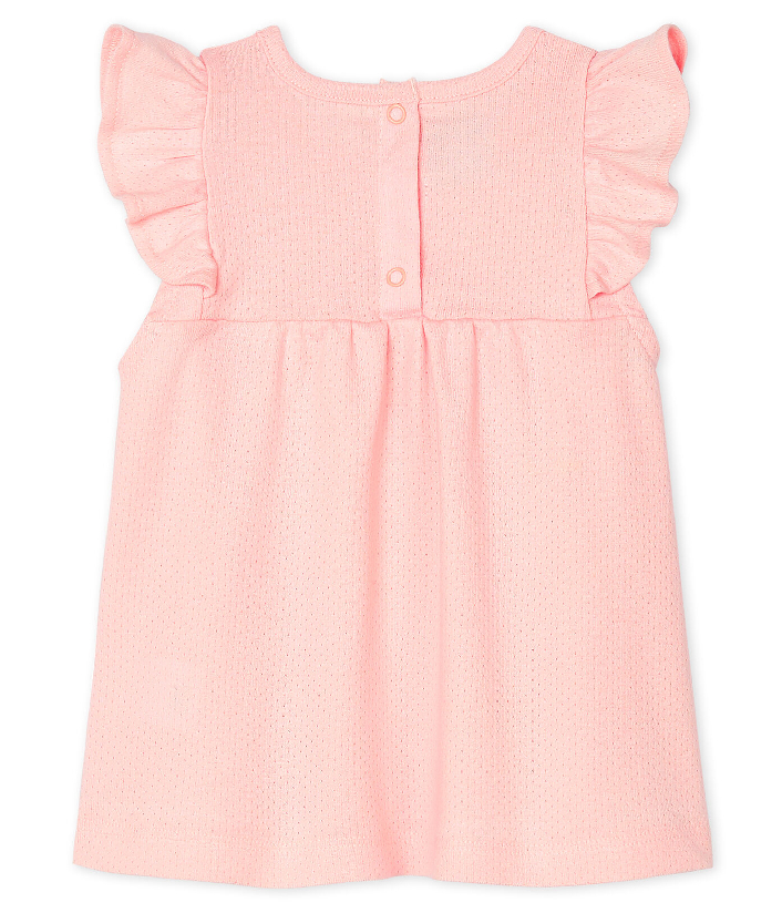 Блуза для младенца нежного розового цвета. Застежки на кнопочки сзади. Состав: 100% хлопок