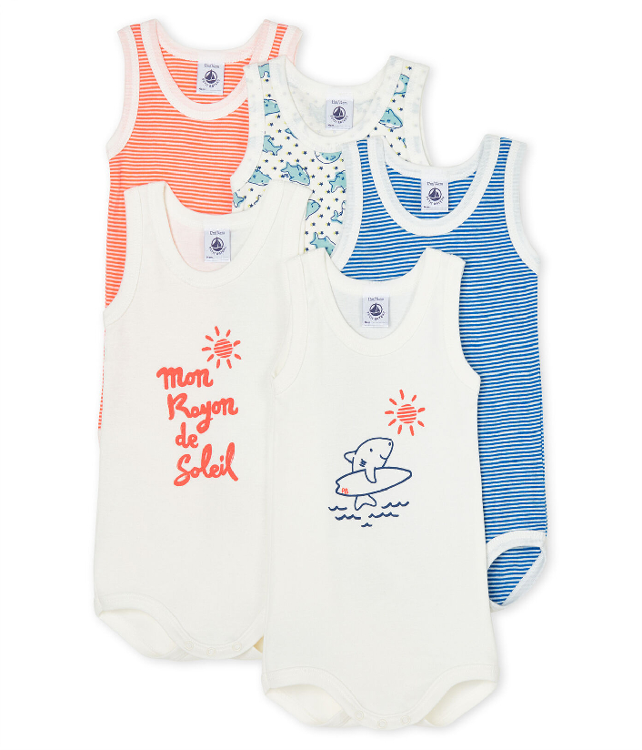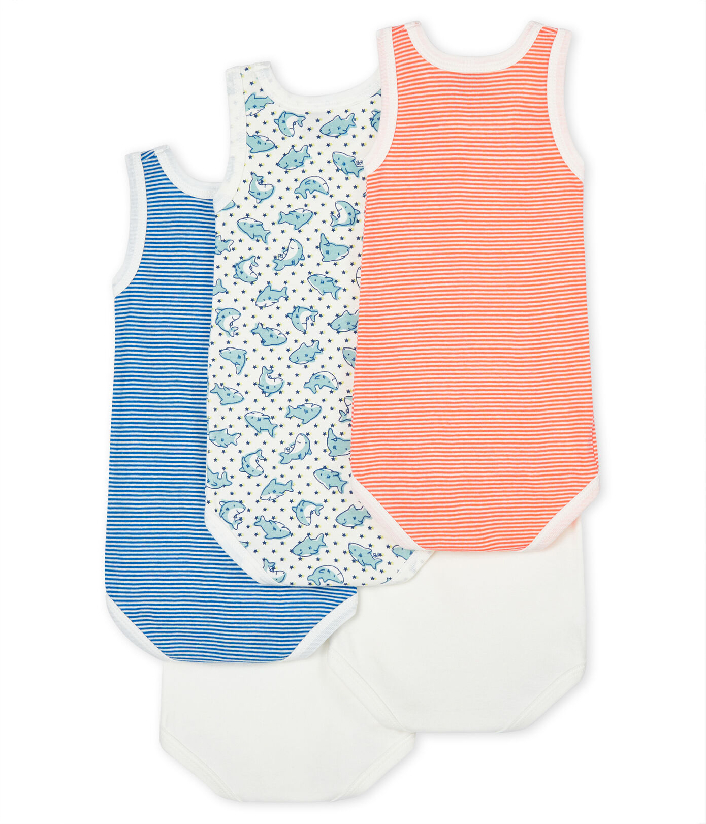 Различные и яркие боди - с надписью и солнышком, в полосочку, с дельфинчики. Одевайтесь под настроение. Petit Bateau производит одежду из сертифицированной хлопка, поэтому будьте уверены в качестве изделий. Состав: 100% хлопок