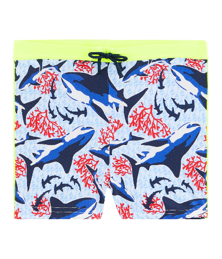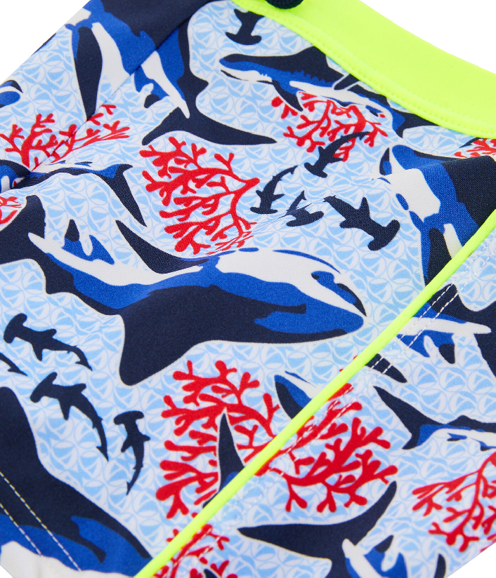Плавки изготовлены из переработанных материалов, которые гарантируют защиту от ультрафиолетового излучения (UPF50 +). Стандарт UPF 50+ (фактор защиты от ультрафиолета) обеспечивает защиту ваших детей от 95% UVA- и UVB-лучей. Это самый высокий фактор защиты от солнца. Состав: 78% полиэстер, 22% эластан / 100% полиэстер