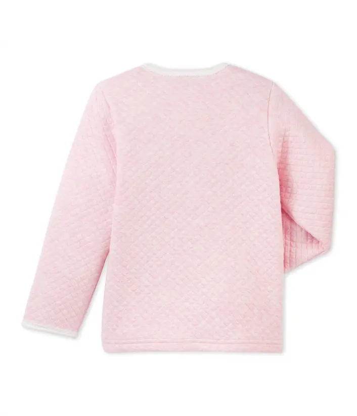 Невероятно красивый кардиган для девочки, изготовленный из двойной хлопковой ткани с ромбовидным узором. Элегантная отделка в стиле "пико" украшает вырез и манжеты рукавов. Материал: 75% хлопок, 25% полиэстер.