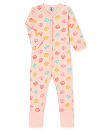 Пижама для младенца с разноцветными ракушками. V-образный вырез. Ступни по желанию можно закрыть, чтобы было теплее. Застежки на кнопочки. Это так удобно! Состав: 100% хлопок