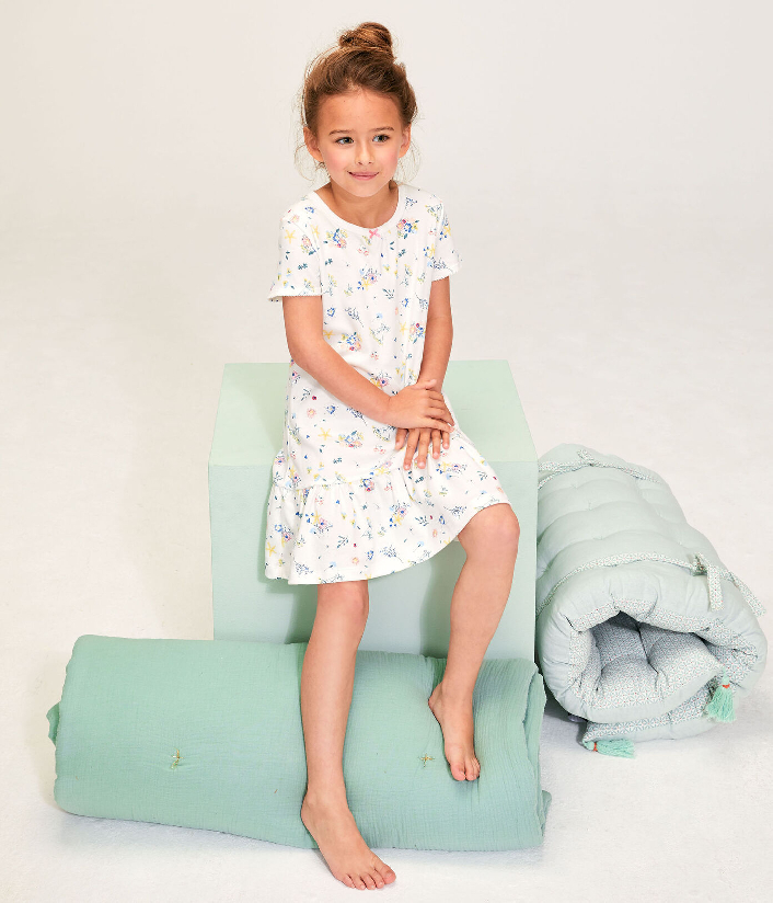 Ночная рубашка с цветочным принтом и трикотажной повязкой для волос. Качество для Petit Bateau прежде всего! Состав: 100% хлопок