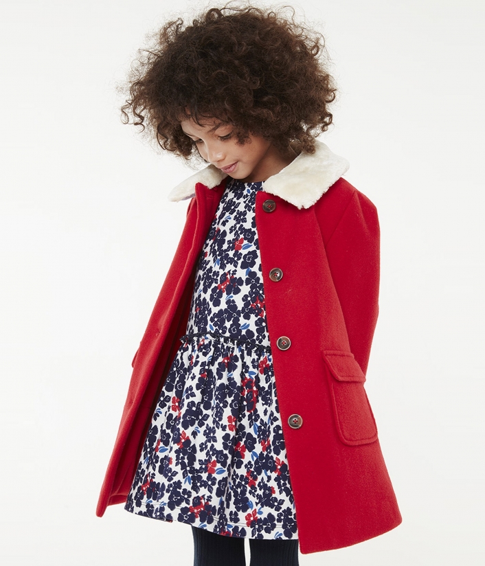 Это шерстяное пальто для девочки имеет такой изысканный вид, благодаря А-образному силуэту и красивым деталям: белый воротничок и складка на спине. Воротничок можно снять при желании. Для придания комфорта и тепла, подкладка пальто изготовлена из мягкого микро-флиса. Материал: 80% шерсть, 20% полиамид; подкладка - 100% полиэстер.
